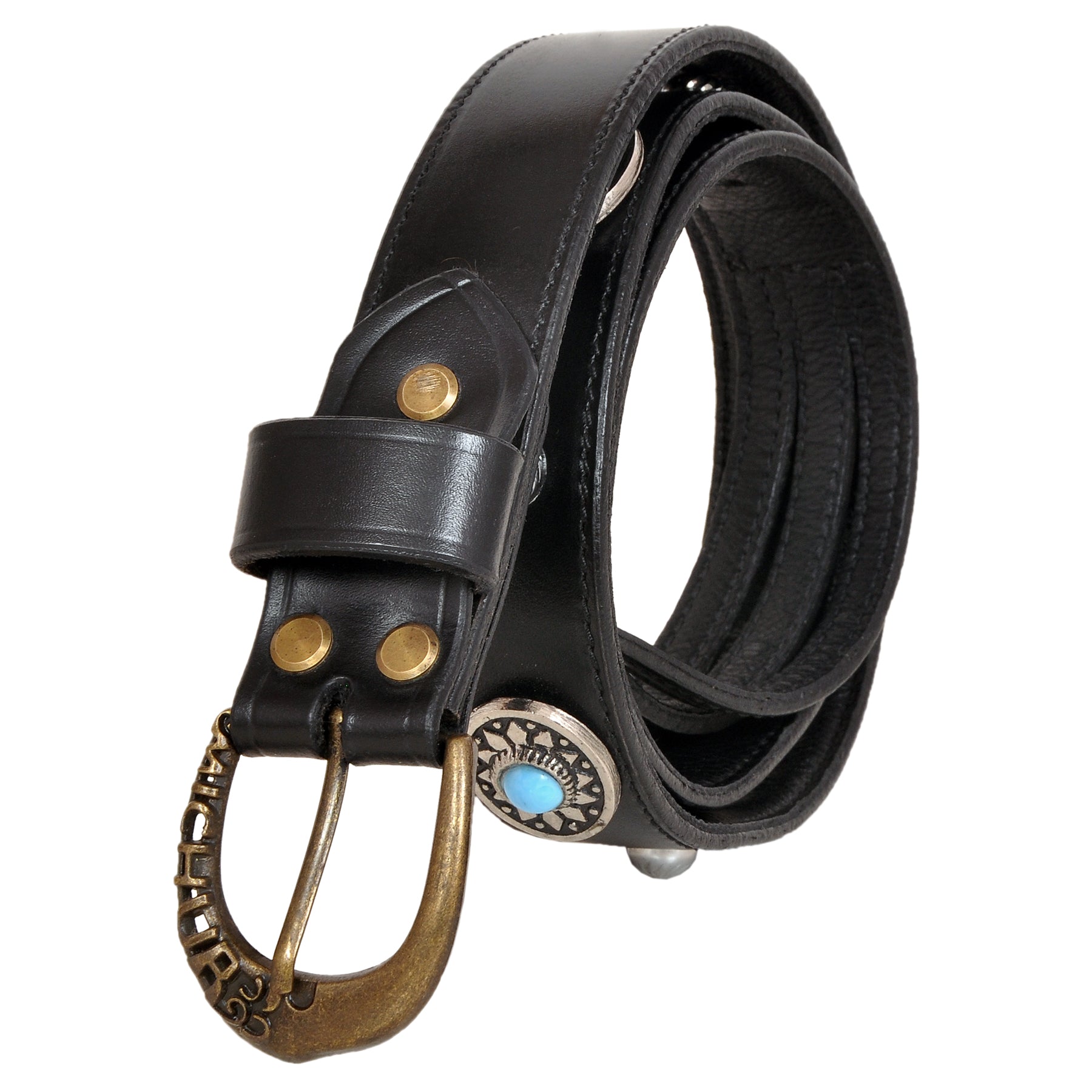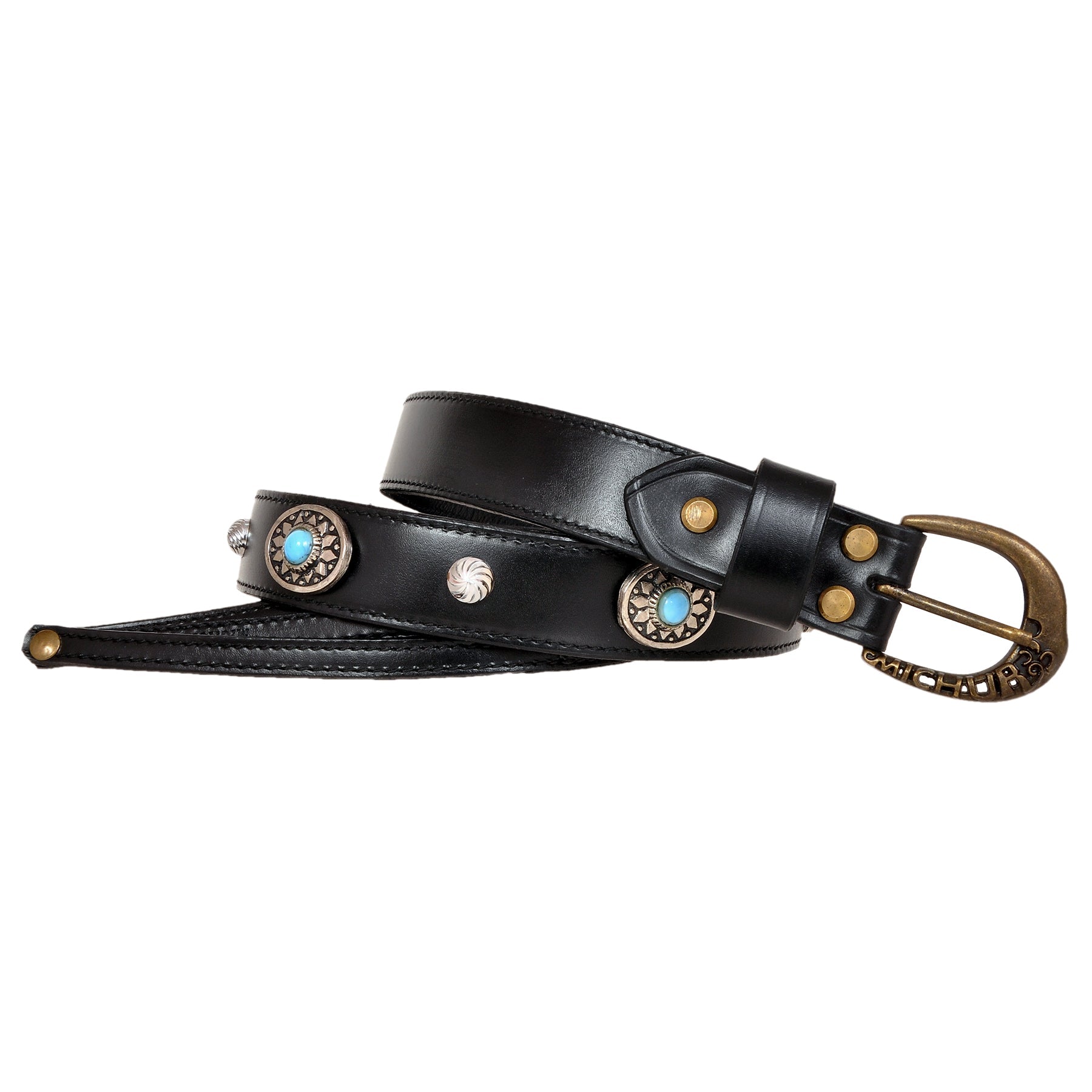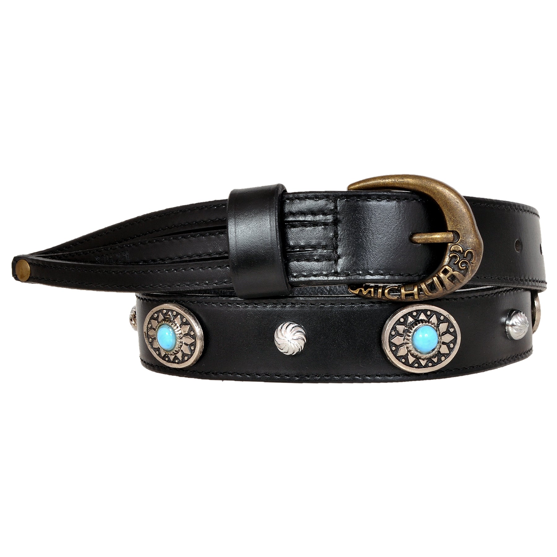 Hochwertiger Ledergürtel : Der Michur Alonzo Ledergürtel für Damen besteht zu 100% aus echtem Leder. Der Soft-Touch Ledergürtel in schwarz mit blauen Steinen und runden Nieten machen ihn zu einem einzigartigen Gürtel.