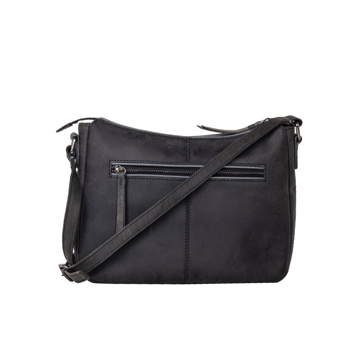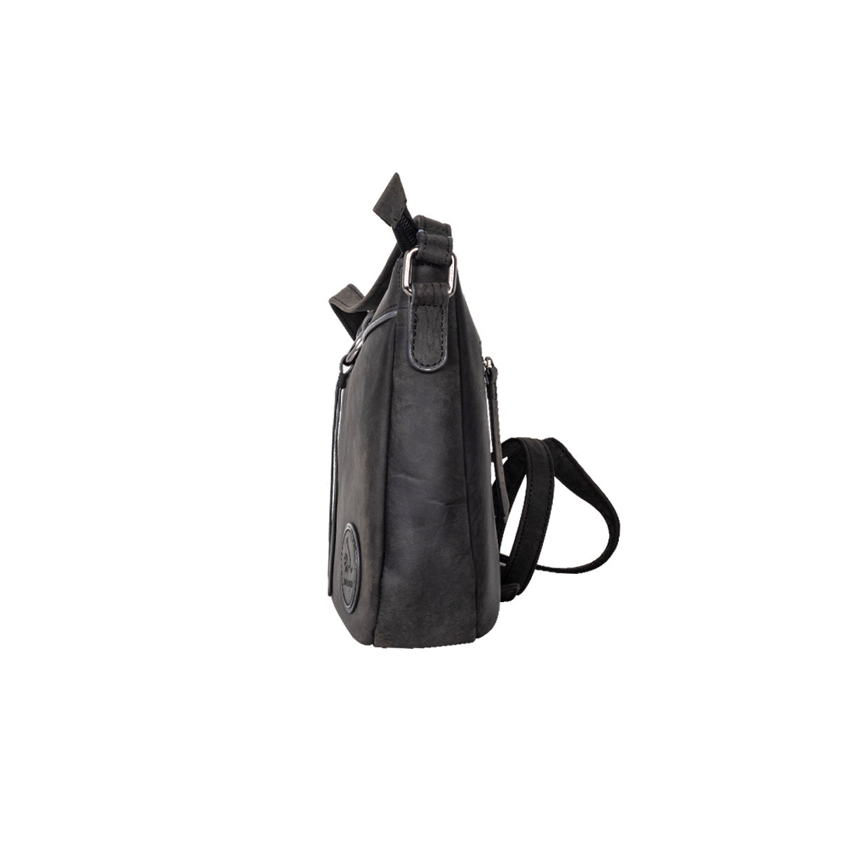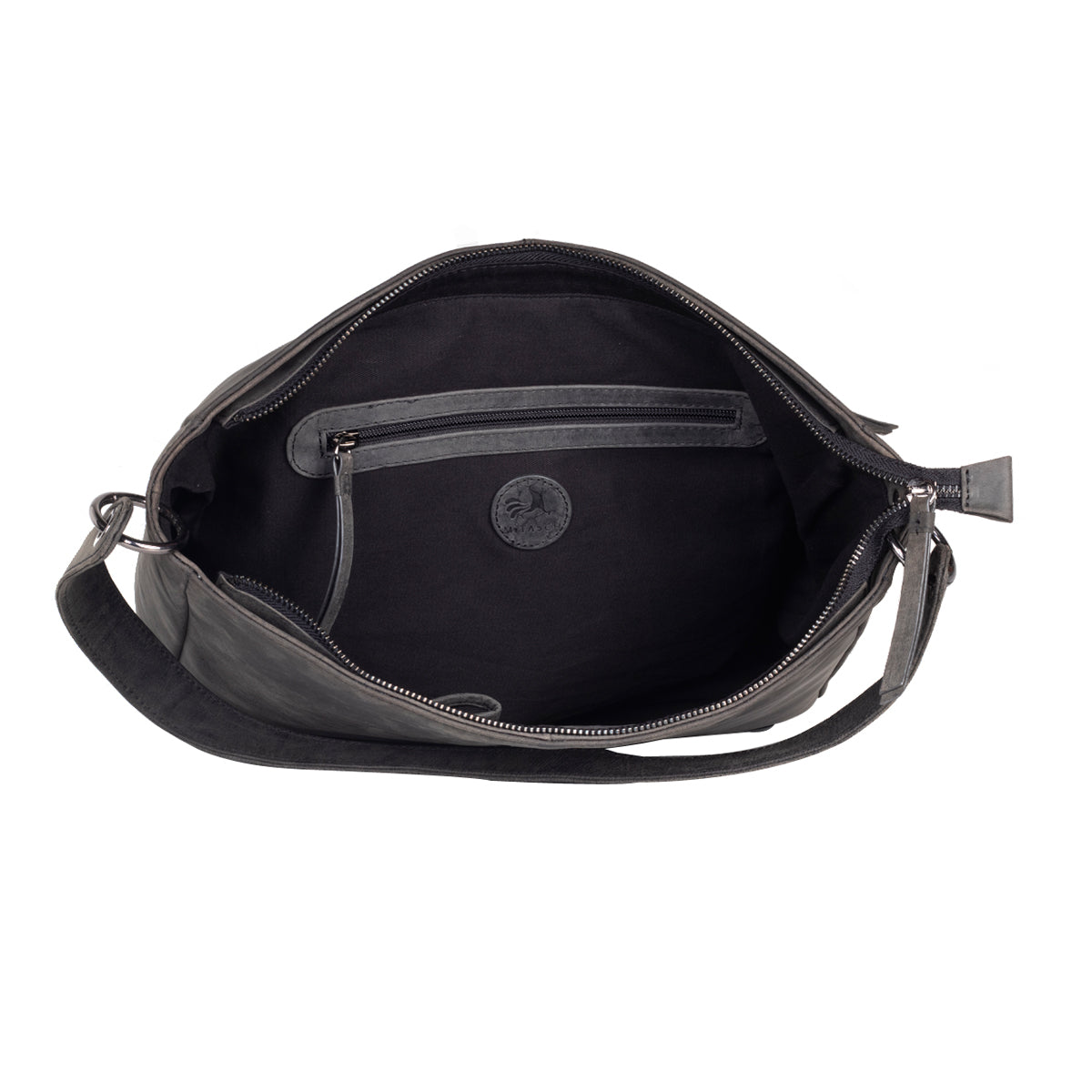 • Die Ledertasche für Damen in schwarz mit grauem-kick ist mit ihrem schlichten Designe der perfekte Begleiter für einen kleinen Stadtbummel oder einen eleganten Abend.