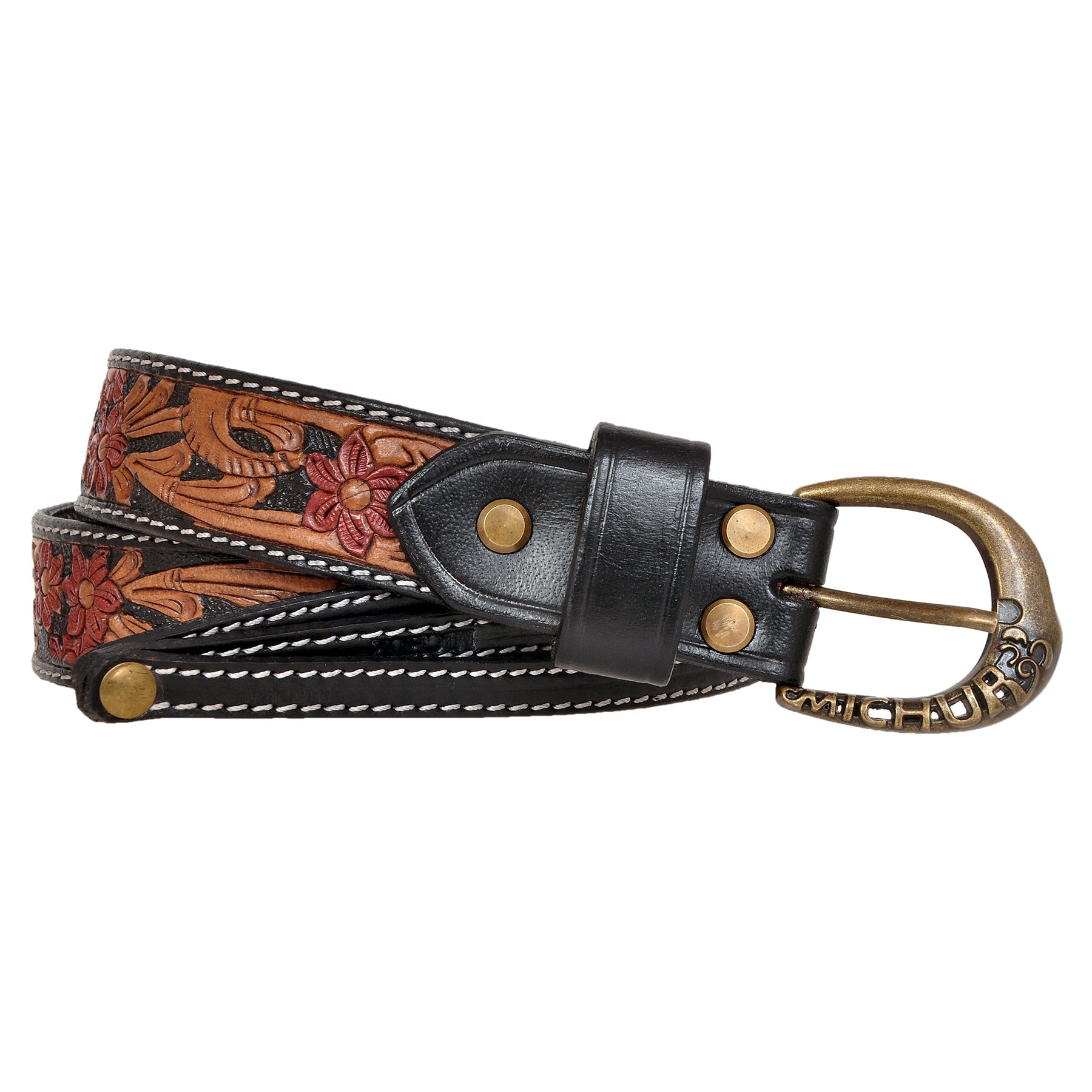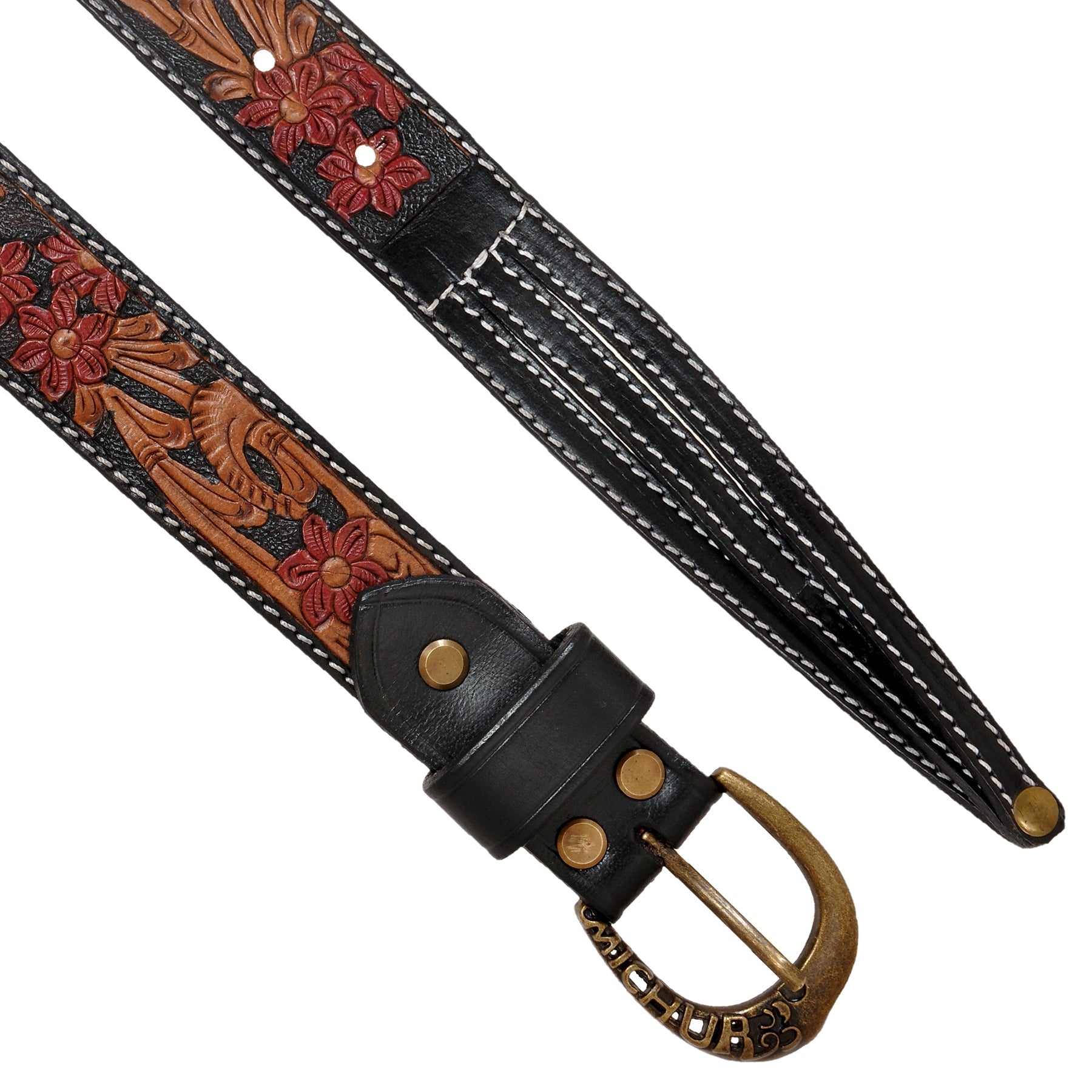 Hochwertiger Ledergürtel : Der Michur Flora Ledergürtel für Damen besteht zu 100% aus echtem Leder. Der Soft-Touch-Ledergürtel in Schwarz und Braun mit roten Blumenmustern und die handgeschnitzten Designs machen ihn zu einem einzigartigen Gürtel. Dieser Flora damen-gürtel ist 3 cm breit und in verschiedene Länge.