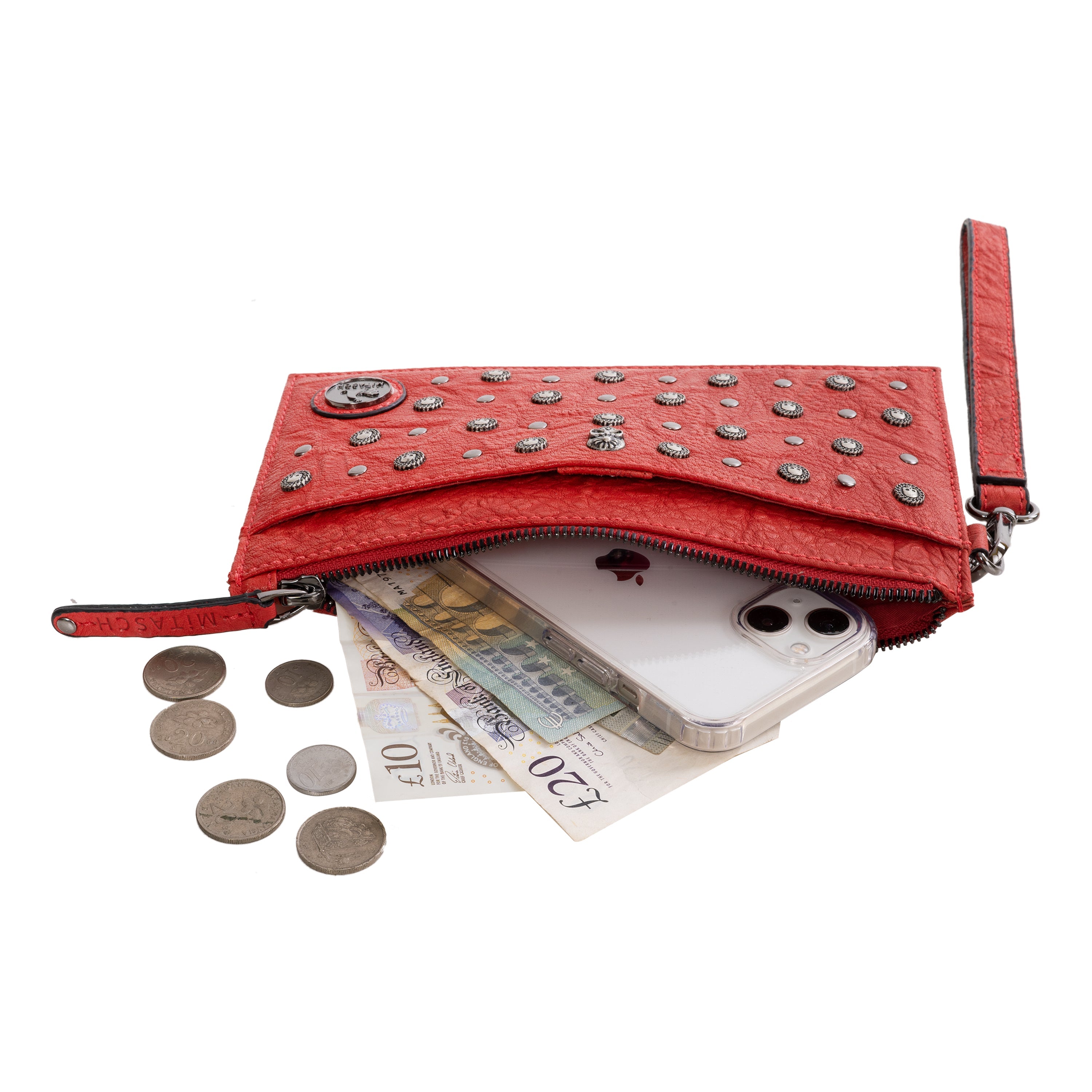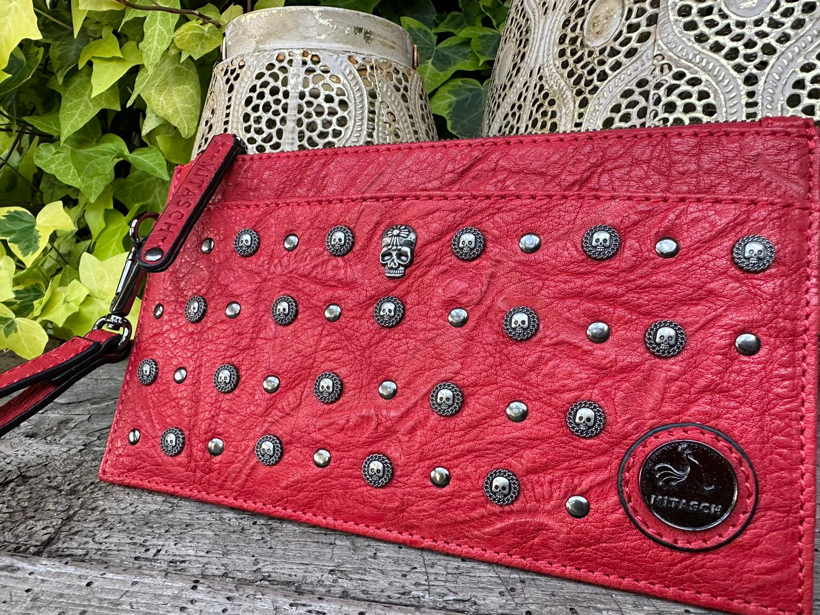 • Handytasche aus echtem Leder mit Handyfach. In rot mit einzigartigen Totenkopf-Nieten ist diese Handytasche der Hingucker und für den Alltag, ist aber auch für besondere Anlässe gut geeignet.