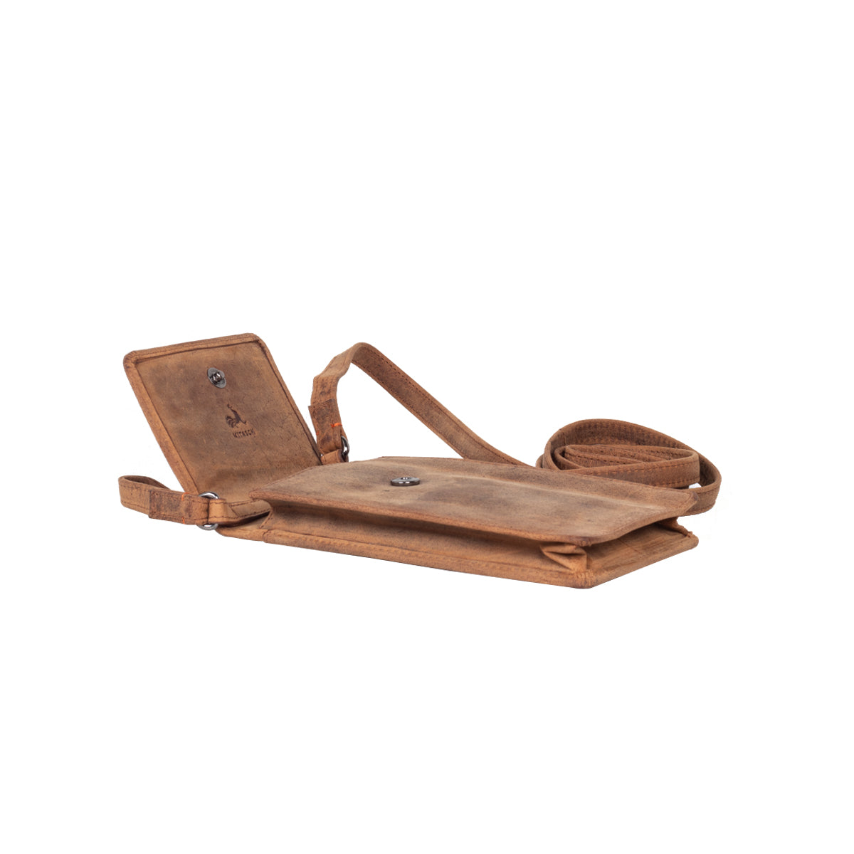 • Umhängetasche Leder mit Handyfach, Handtasche oder Handytasche, alles kombiniert in einer Tasche aus feinstem Leder. In schönem braun orange