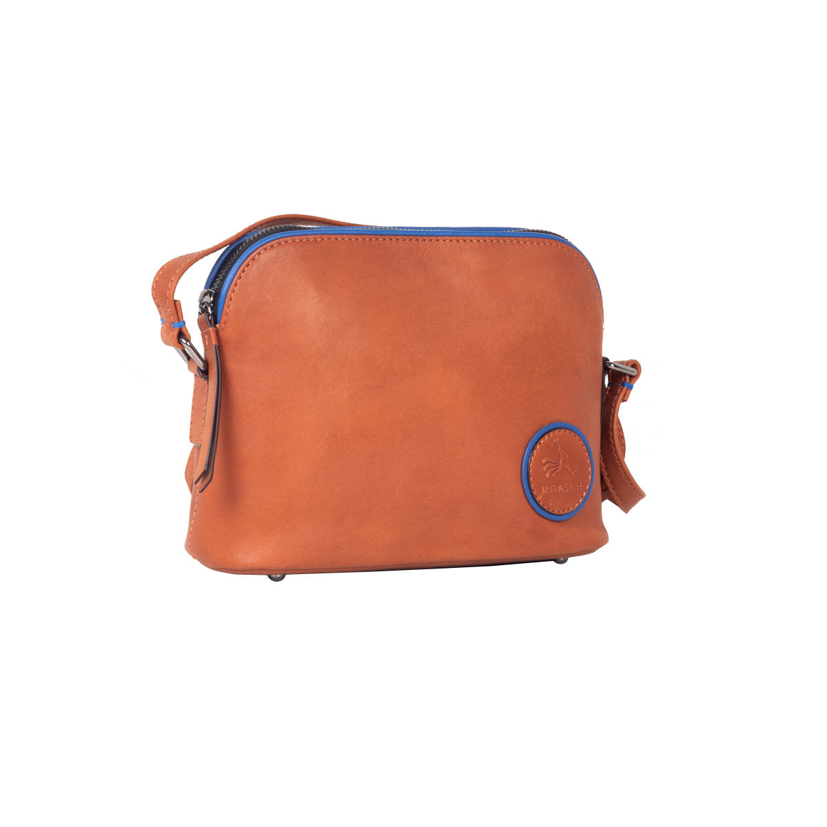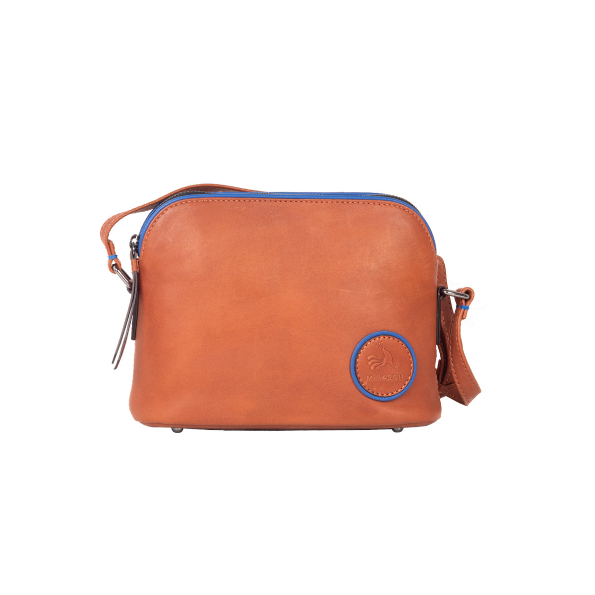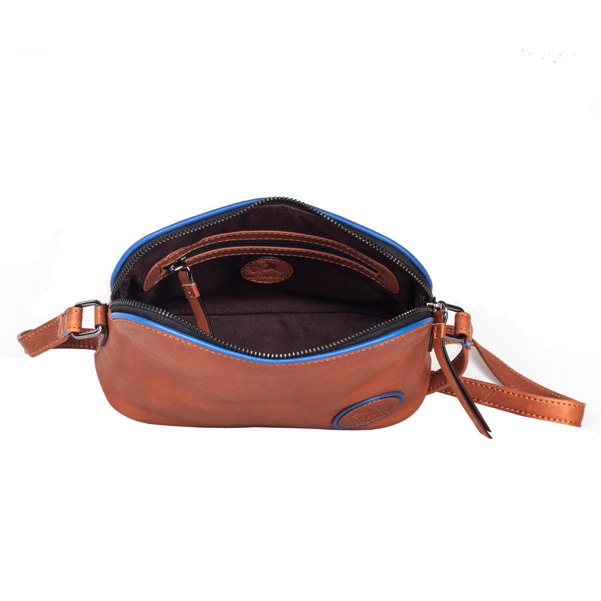 • Die Ledertasche Damen in braun mit blauem Kick ist mit ihrem schlichten Design der perfekte Begleiter für einen kleinen Stadtbummel oder einen eleganten Abend