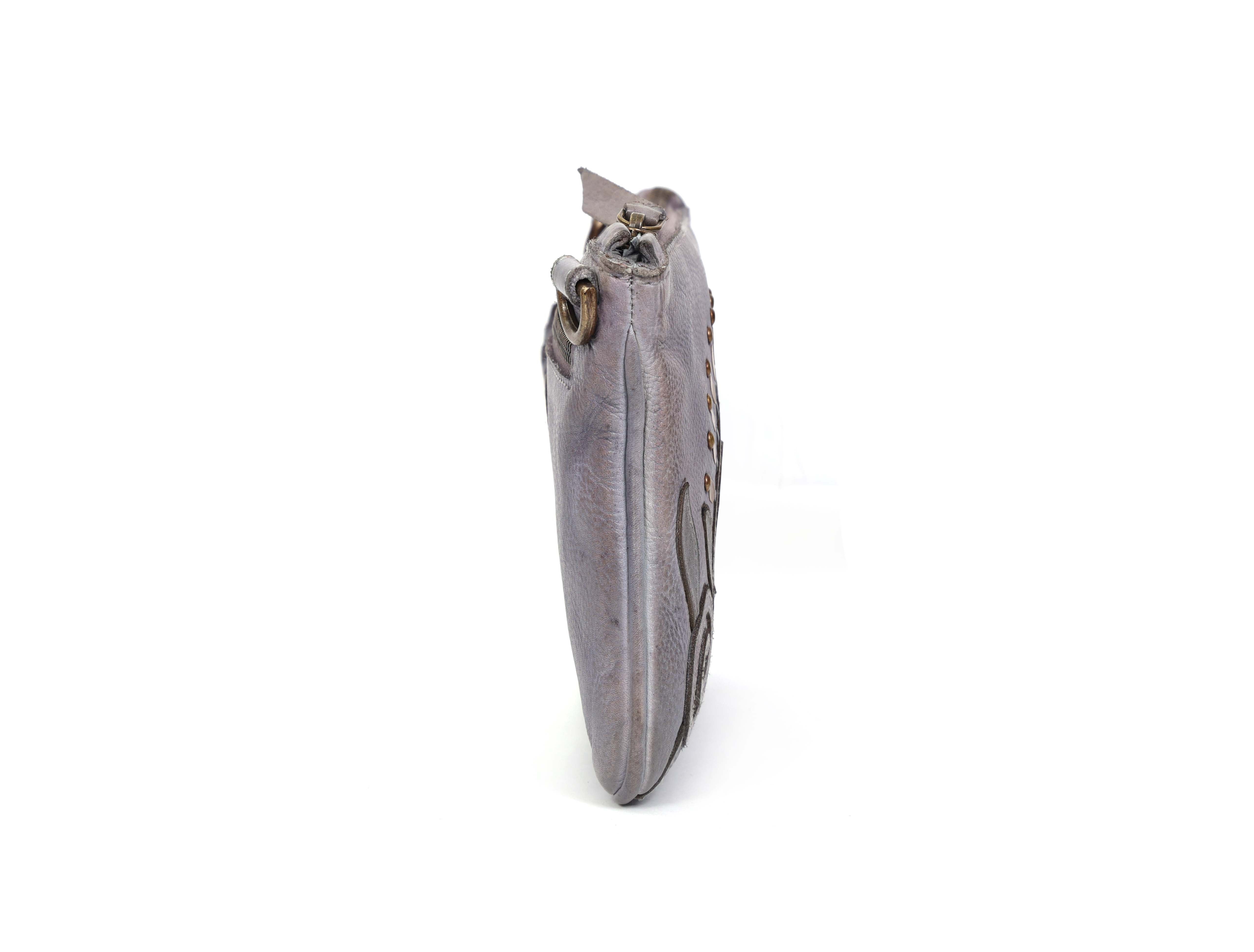• EINZIGARTIG - Unsere kleine Umhängetasche Louise ist mit ihrem einzigartigen Design ein echter Hingucker. Die Tasche in grauer Farbe sticht mit ihrem einzigartigem Blumen-Design und ihren Nieten besonders heraus.