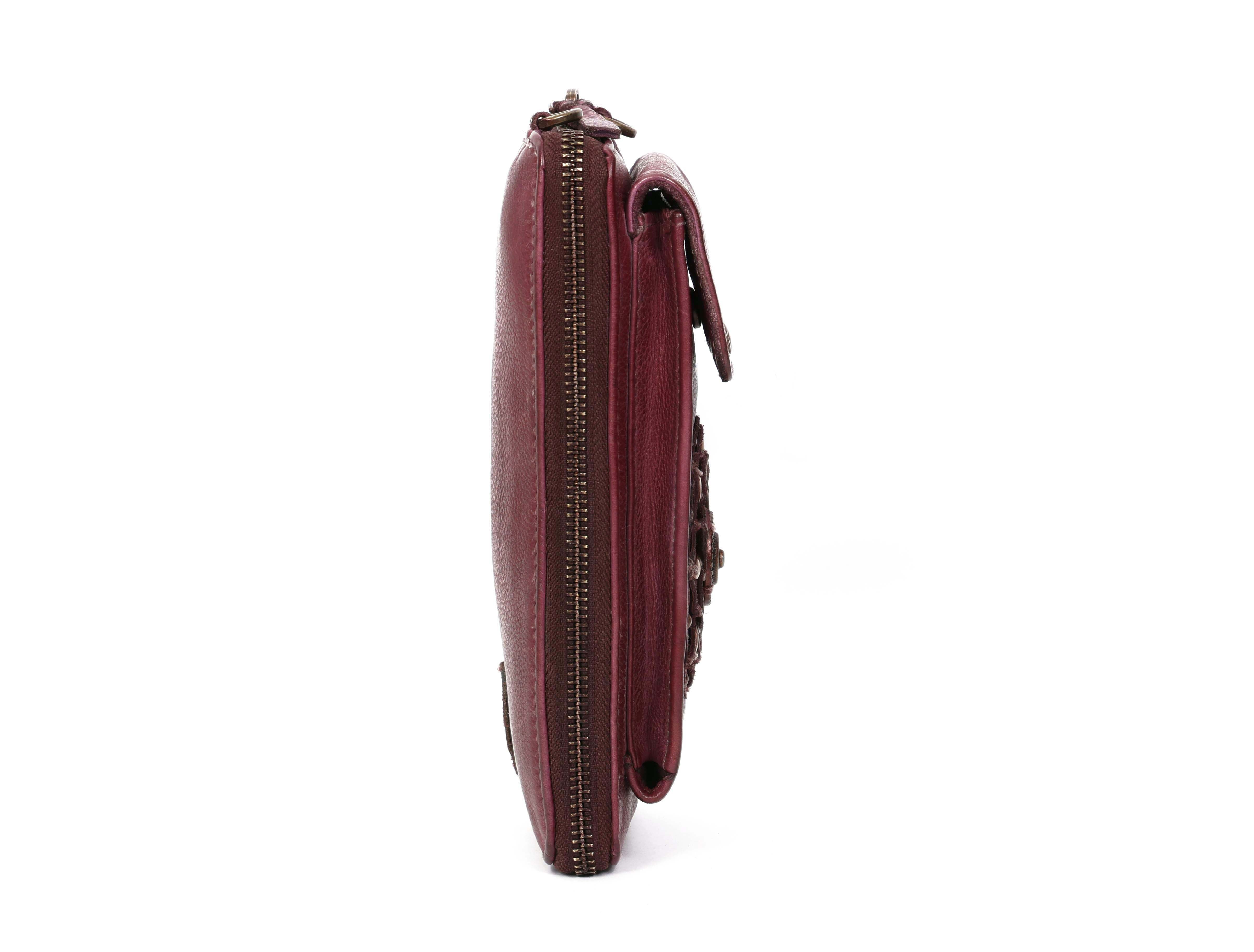 • EINZIGARTIG - Unsere Handytasche Monique ist mit ihrem einzigartigen Design ein echter Hingucker. Die Tasche in dunkelroter Farbe sticht mit ihrem einzigartigem Blumen-Design und ihren Nieten besonders heraus.